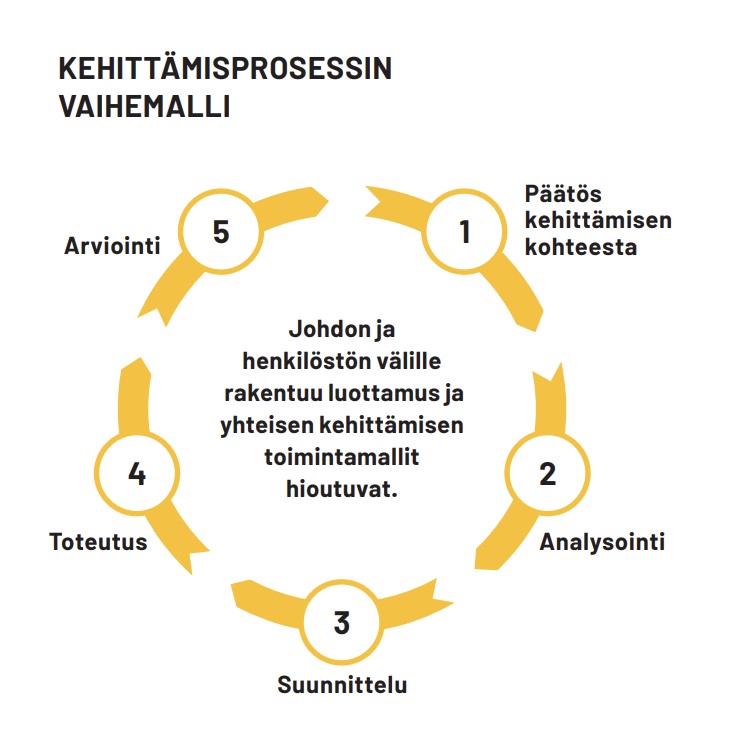 • Vaiheittaisella kehittämisprosessilla varmistetaan, ettei kehittäminen jää kesken.